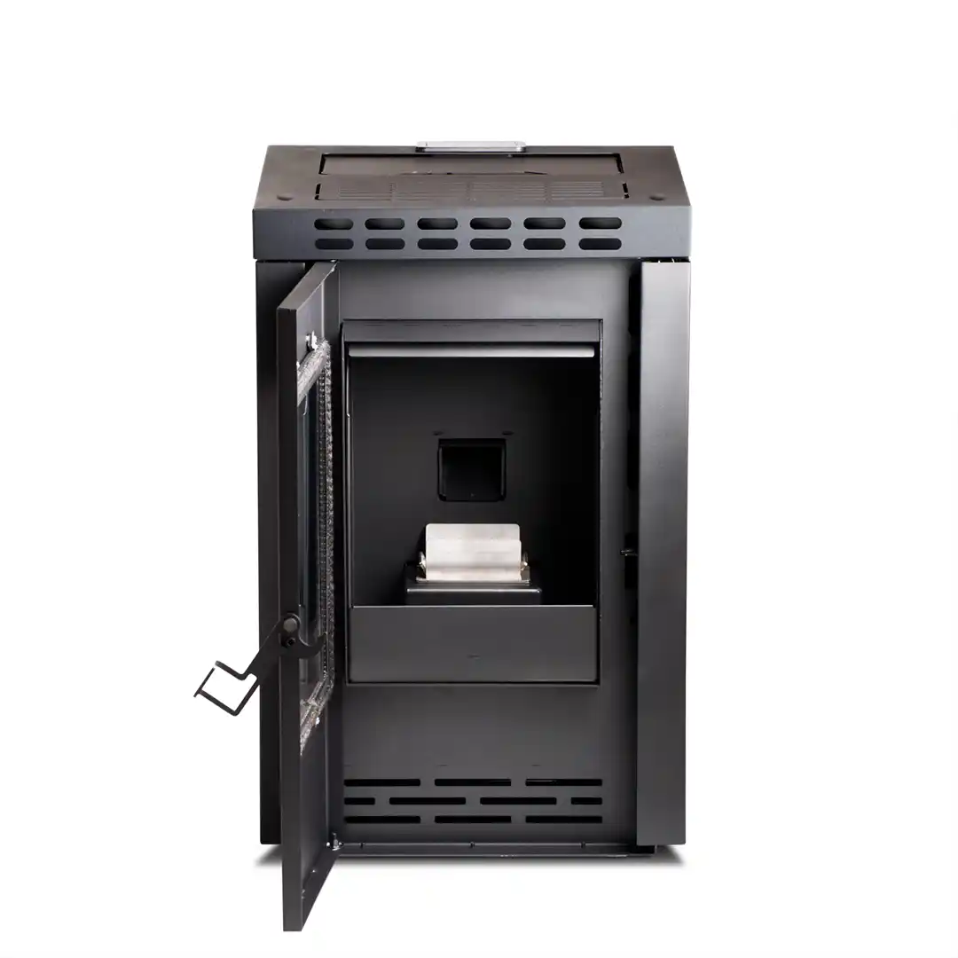 - Tolva con capacidad para 13 kg de almacenamiento de pellet
