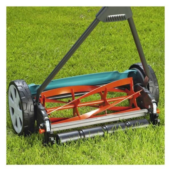 - La característica especial: el cilindro de corte y la cuchilla inferior no se tocan y, por lo tanto, permitir que el trabajo sea agradable, más fácil de empujar y con bajo nivel de ruido. El cilindro de corte endurecido y antiadherente hecho de acero de calidad y la hoja inferior del suelo garantiza un corte limpio y preciso para un excelente cuidado del césped.