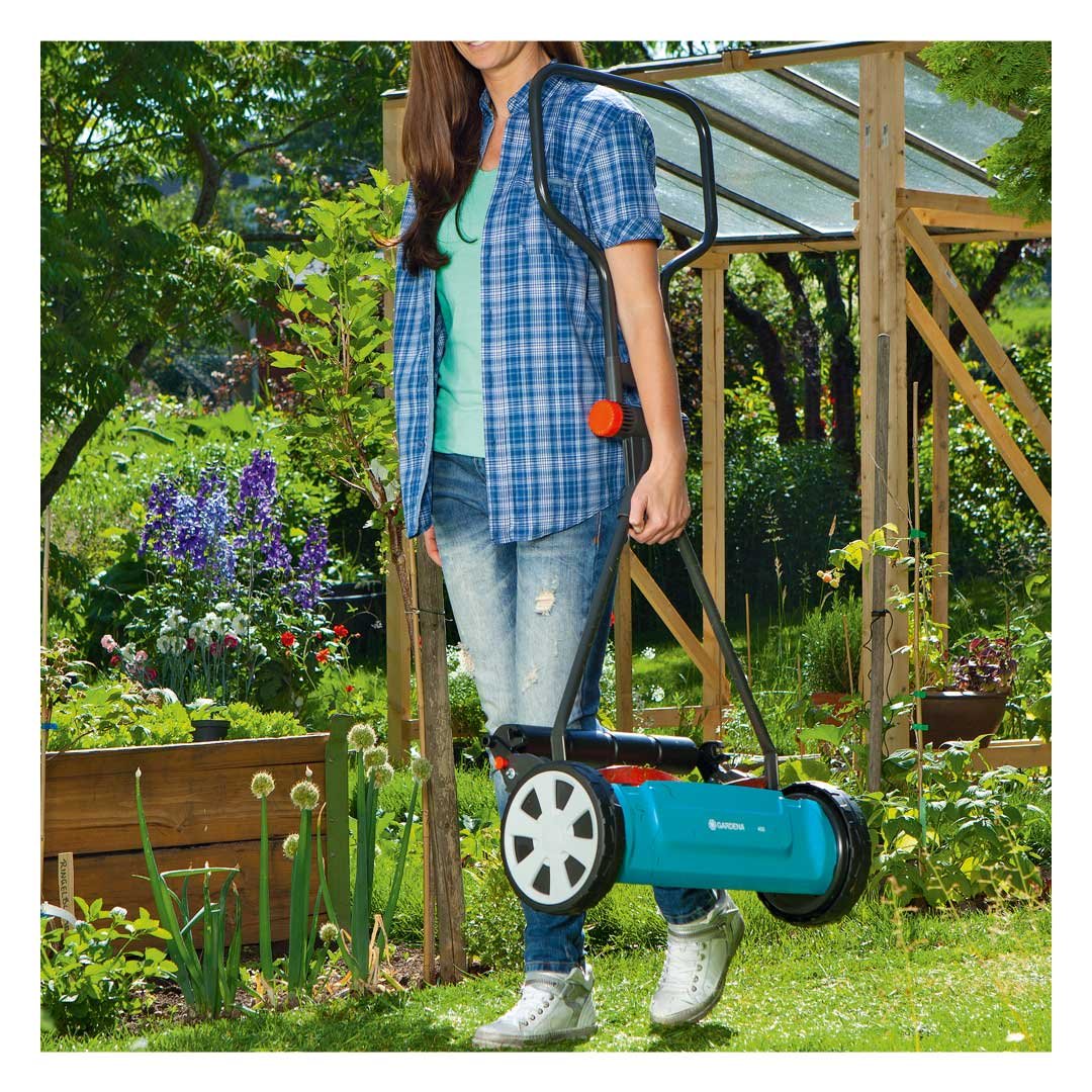 El Cortacésped helicoidal 400 GARDENA funciona sin electricidad y no perjudica al medio ambiente.