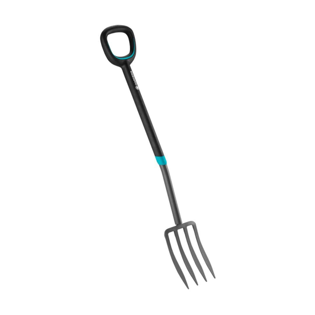 La horca Gardena Ergoline es una herramienta para cavar fácilmente sin dañar las raíces, remover y mover la tierra de un lugar a otro en zonas con plantas.