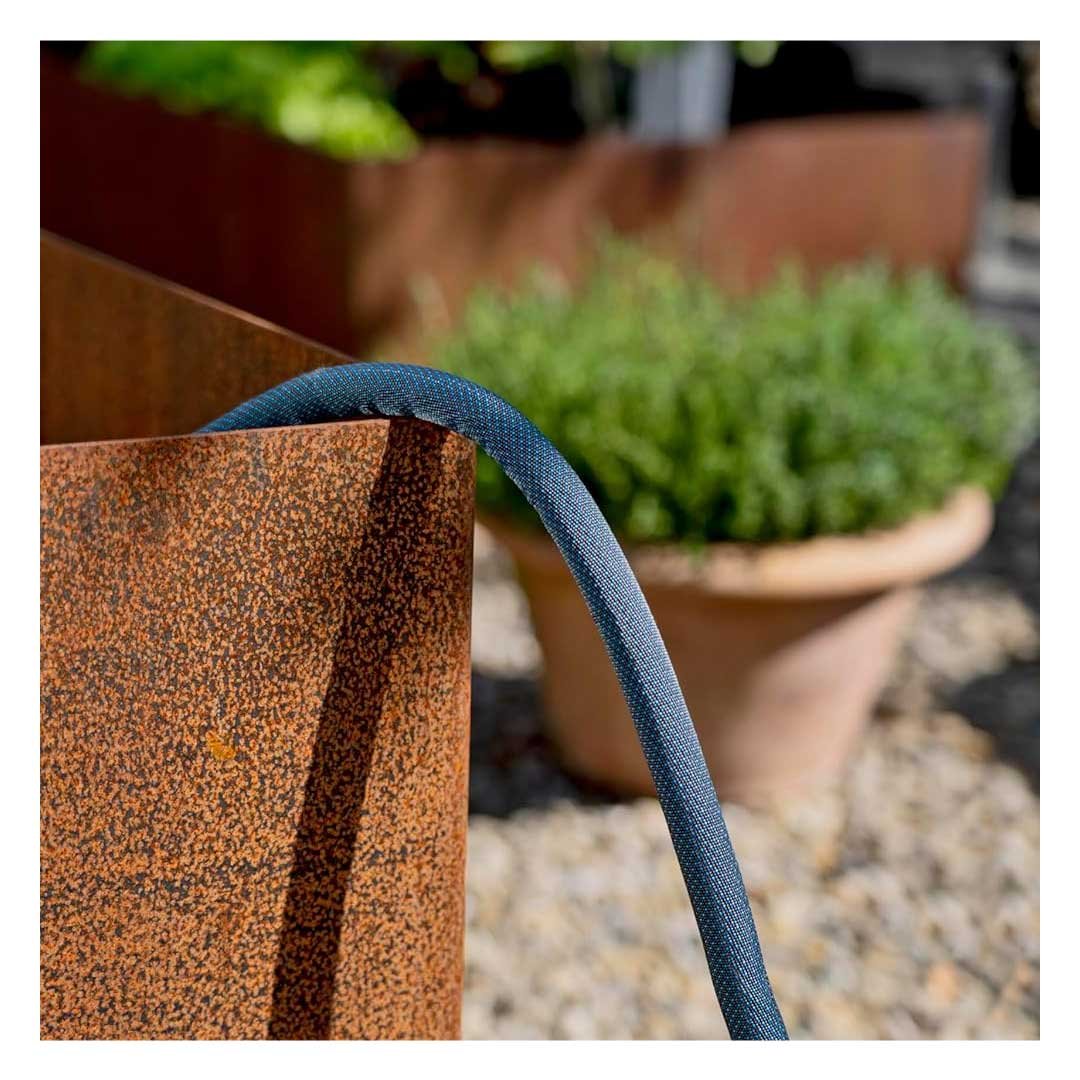 - El Liano Xtreme impresiona por su rendimiento, flexibilidad y durabilidad óptimos, que se obtienen de la manguera interior de PVC muy flexible y la manguera exterior innovadora hecha de tejido textil extremadamente resistente. Gracias a su durabilidad y su superficie que repele la suciedad, domina los terrenos irregulares, como espinas de rosas, adoquines o el arrastre a lo largo de las paredes de las casas.