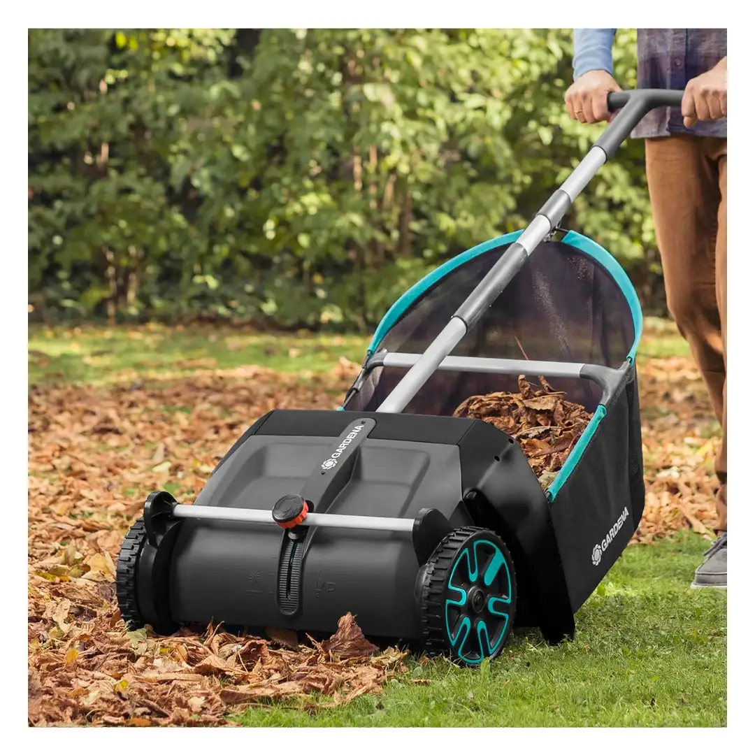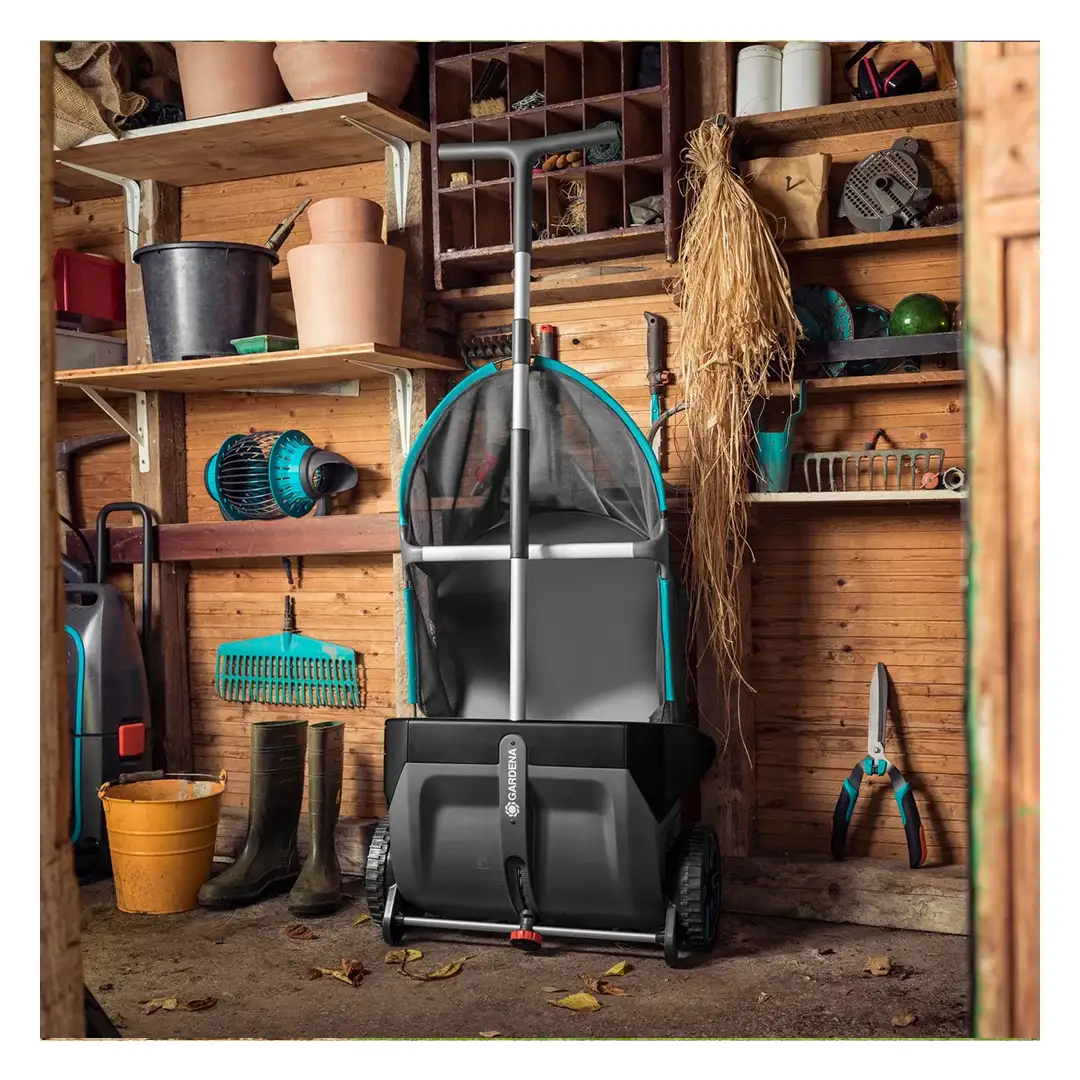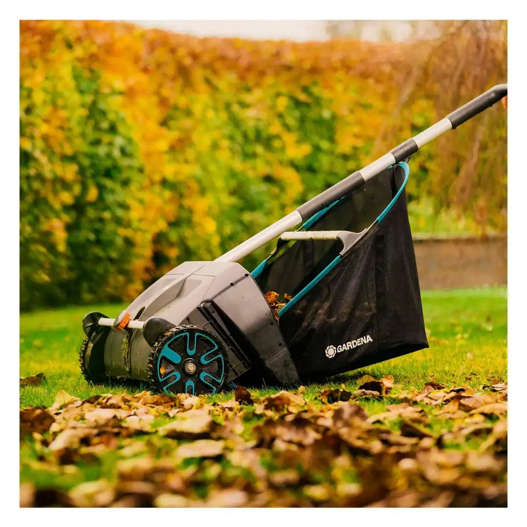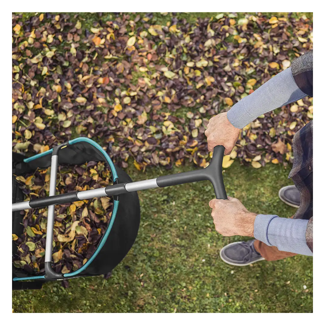 Su césped debe estar libre de hojas y quitarlas puede ser tedioso. Con el Recolector de hojas y césped de Gardena, esta tarea se convierte en algo que se puede hacer de manera rápida, silenciosa y cómoda. ¡Y sin inclinarse! Recoge las hojas sin esfuerzo.