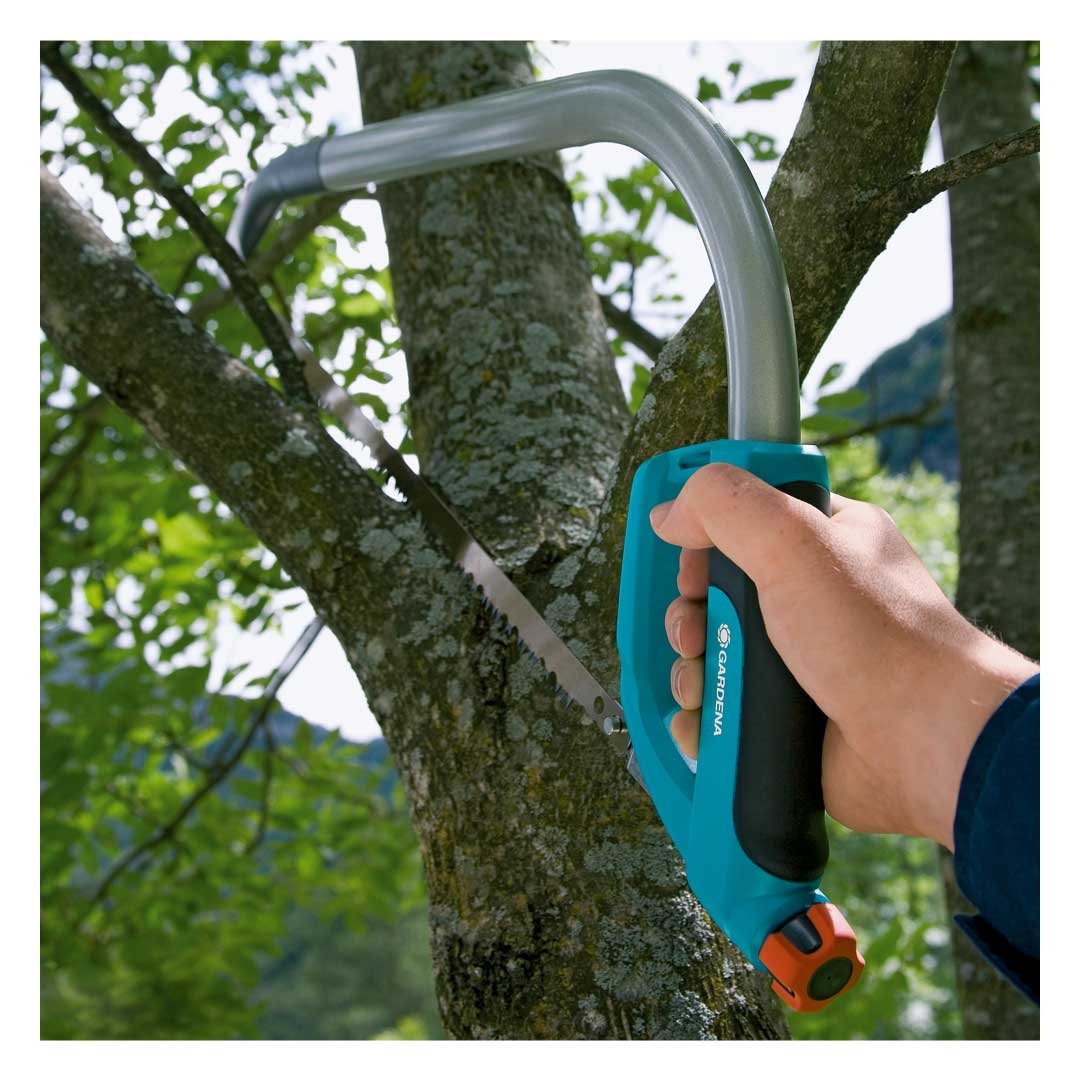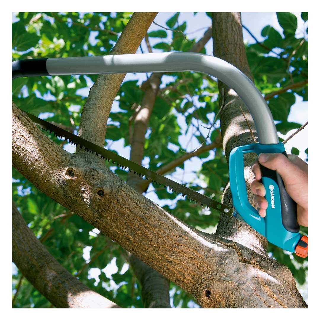 Con un arco más alto, la sierra de arco Comfort 760 de Gardena es perfecta para serrar ramas y troncos más gruesos. Con una hoja de sierra de 760 mm de longitud, endurecida a impulsos y resistente al óxido con dentado de precisión, la sierra es perfecta para la madera fresca y seca.