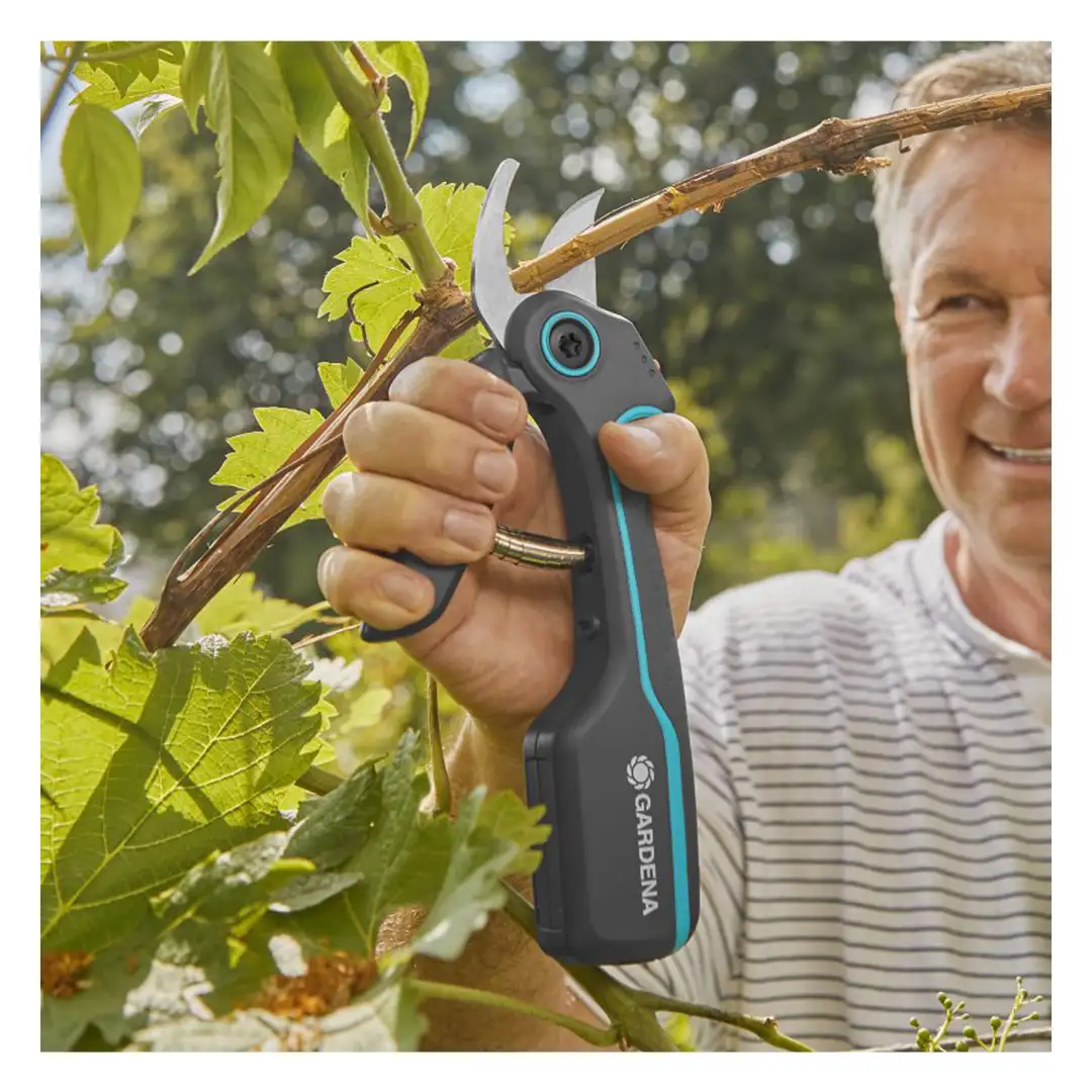 - Tiene un sensor inteligente, que proporciona hasta 5 veces más potencia (en comparación con las tijeras de podar habituales) al cortar ramas más gruesas tan pronto como se detecta resistencia. Reduce la tensión de la mano, lo que facilita aún más las tareas de jardinería sin esfuerzo.
