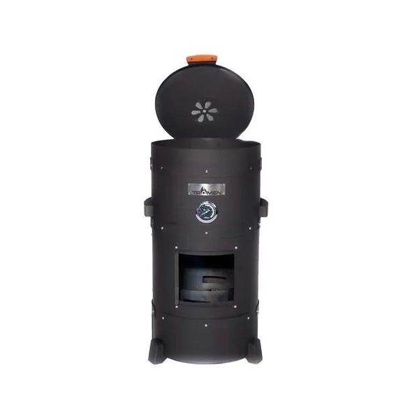 El ahumador Tromen Smoker 410 es una parrilla a leña y carbón con parrilla enlozada. Sus dimensiones son 41 cm de ancho, 85 cm de alto y 48 cm de profundidad. Este ahumador incluye una estructura colgante, ganchos y guantes, proporcionando todo lo necesario para una experiencia de ahumado completa.